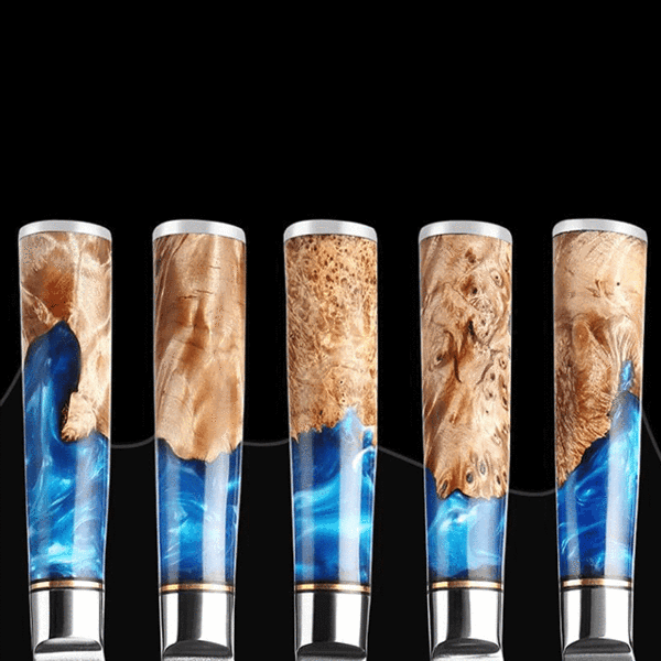 • Beautiful & Comfortable Handle: Handcrafted with wood and a blue epoxy resin, each handle goes through a stabilization process that delivers an ergonomic feel. The Akari is a well-balanced knife that protects you from overwork and wrist pains.